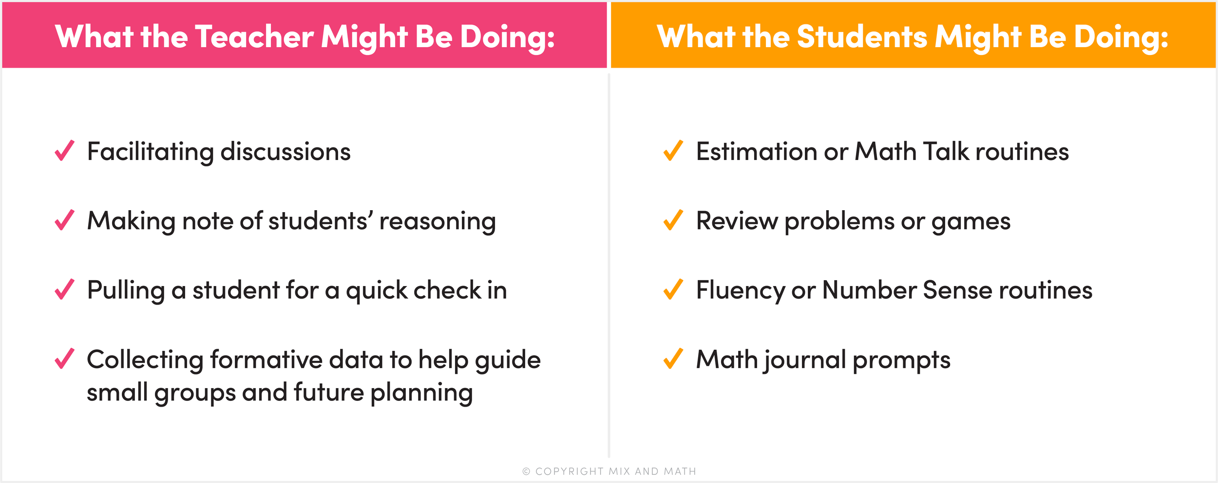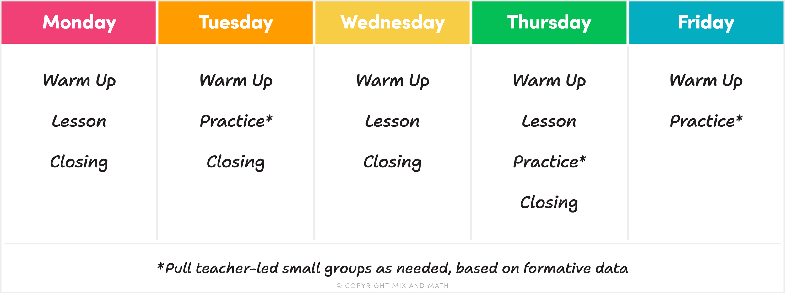 Now that doesn’t mean it’s all chaos and vibes in a math block. There are key components that help create a solid structure. You won’t necessarily use them the same way every day (or even use them all every day!), but understanding them gives you a solid foundation you can flex with confidence.