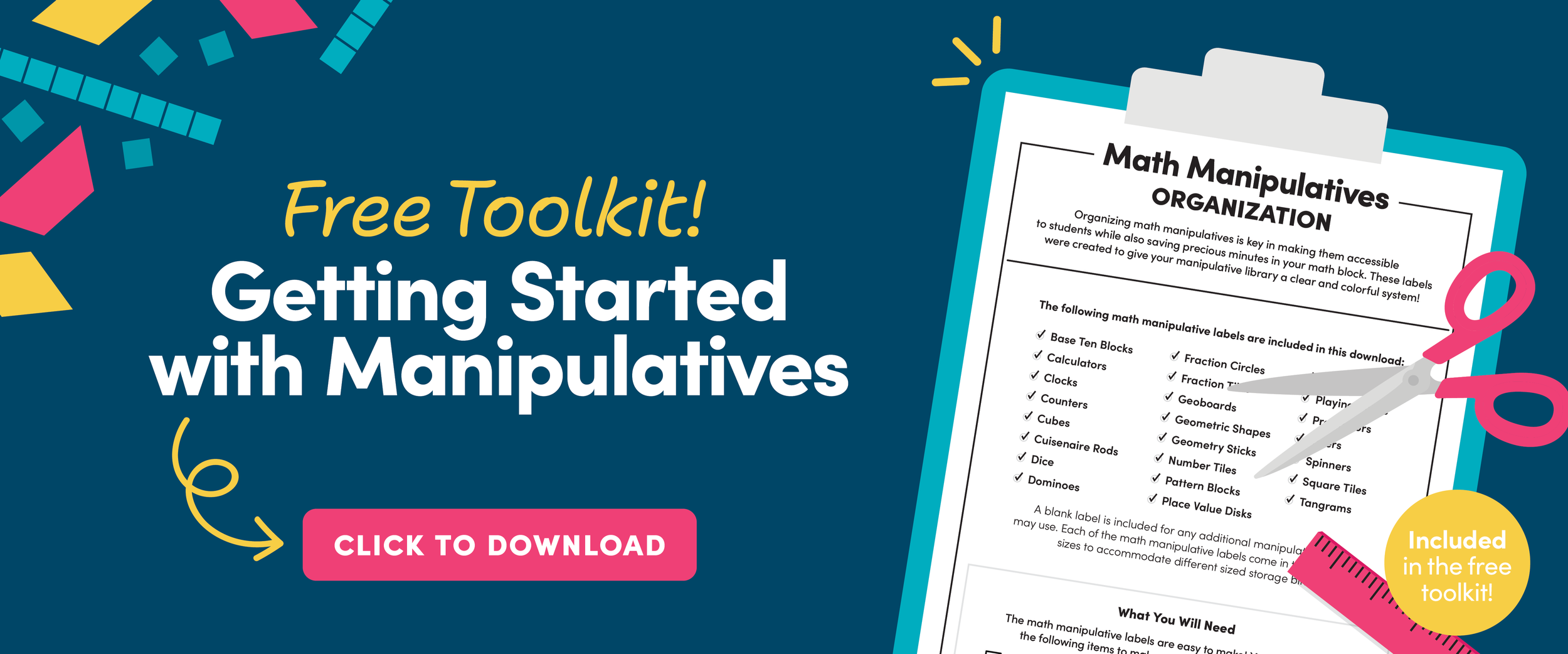 Label everything! Students should know exactly where everything is so they can quickly find what they need! AND GUESS WHAT?! We created labels for you to use as you organize all your math manipulatives! You can find them in the FREE Getting Started With Math Manipulatives Toolkit!