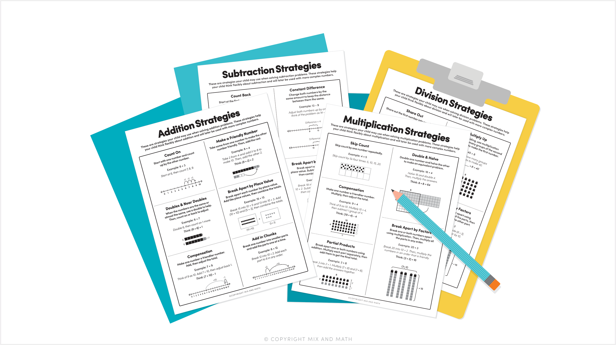 If you’re wondering what strategies you should be teaching students and which visuals best support learning these strategies, we created a free resource to help you! These fluency strategy pages highlight the most useful strategies for all four operations and include representations so that you can see how to make it hands-on and visual as you teach these strategies to students.